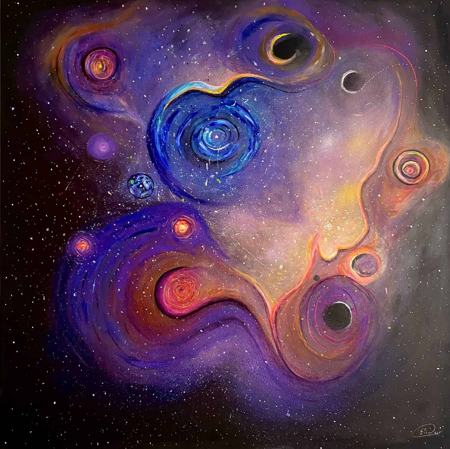 Inspired by the breathtaking imagery of deep space captured by NASA, this painting explores the organic beauty of the cosmos. I wanted to recreate not just the look of a nebula, but the feeling of infinite creation. The fluid swirls of violet, blue, and gold represent the cosmic dance of energy where stars are born. It is a reminder that even in the vast, cold darkness of the void, there is spectacular, vibrant life waiting to unfold.